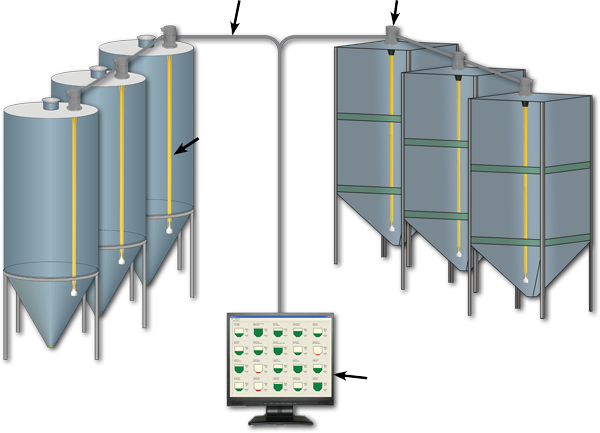 Bei ungünstigen oder langen Kabelwegen kann der BLC-L Messkopf direkt an einen WLAN-Router auf dem Silodach angeschlossen werden. Dabei können mehrere Silos zusammengefasst werden.