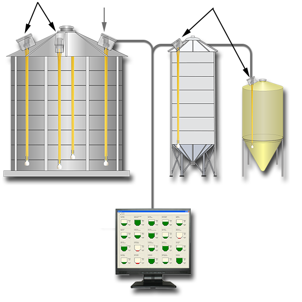 Dieses Messsystem ist für die kontinuierliche Anzeige und Überwachung von kleineren Silos (wie GFK-Silos) bis hin zu großen Silos geeignet. Das ALC-L ist das flexibelste System der Messsystemreihe für die Agrarwirtschaft zum Erfassen von Silofüllständen. Um den Befüllungsgrad von sehr großen Silos zu erfassen, können bis zu 64 Messköpfe zusammengeschaltet werden.