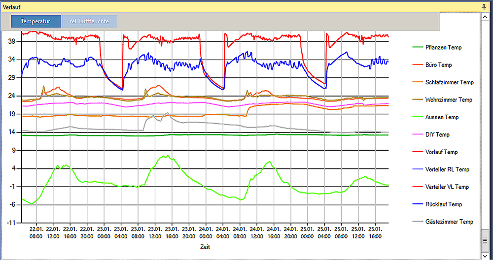 Durch die einfache Zuordnung der Sensoren lassen sich Messungen innerhalb kurzer Zeit starten.Änderungen am Aufstellungsort oder zusätzliche Sensoren können auch während einer laufenden Messung ergänzt werden.