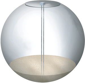 Holzpellet - Lagersystem in Form einer Kugel. Die Kugel wird meist als Erdtank einsetzt mit unterschiedlichen Saugaustragungen. Die Befüllung erfolgt von oben.