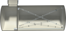 Holzpellet Lagersystem in zylindrische liegender Bauform. Überwiegend Unterirdisch vergrabenes Lagerungssystem mit einem Schrägboden und einer klassischen Schneckenaustragung.